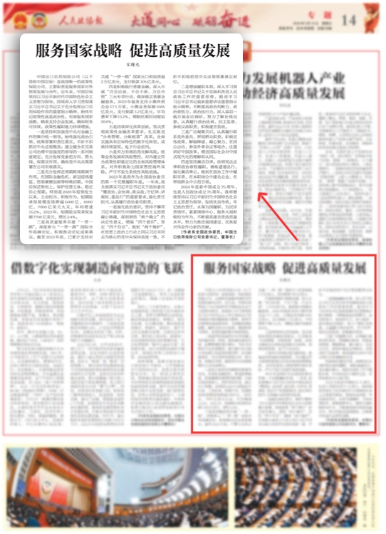三是高质量服务共建“一带一路”。深度参与“一带一路”国际合作高峰论坛,积极推动论坛成果落实。截至2023年底,已累计支持对共建“一带一路”国家出口和投资超2万亿美元,支付赔款105亿美元。