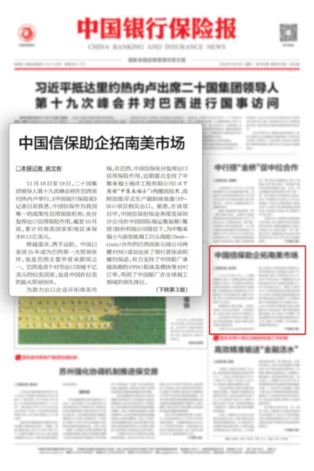 中国银行保险报:中国信保助企拓南美市场